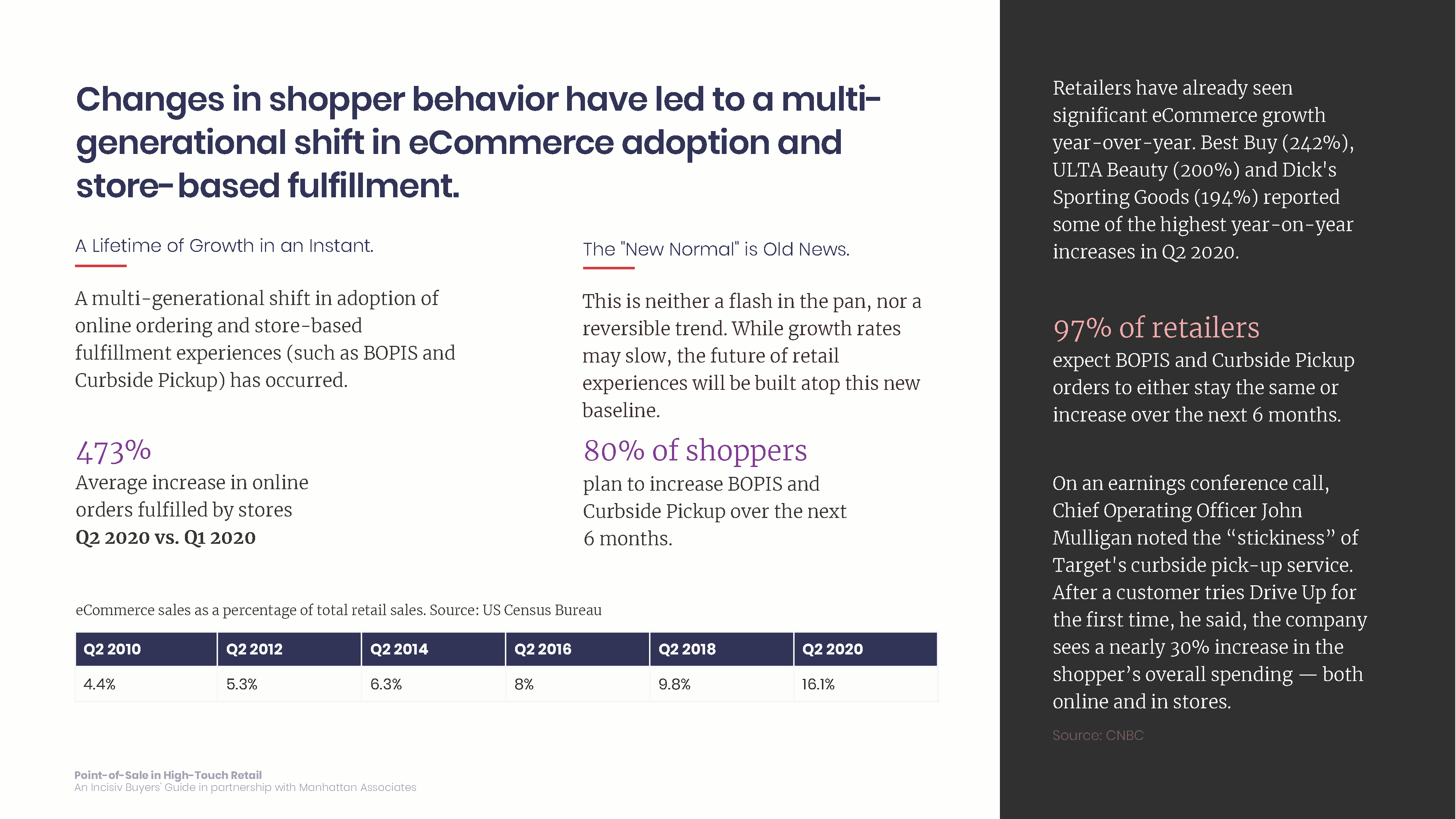 Manhattan Associates commissioned Incisiv to conduct an executive survey across high-touch (non grocery) retailers who offered at least one method of store-based, online order fulfillment at the time of the survey. The survey was fielded between Aug 31 - Sep 18, 2020.