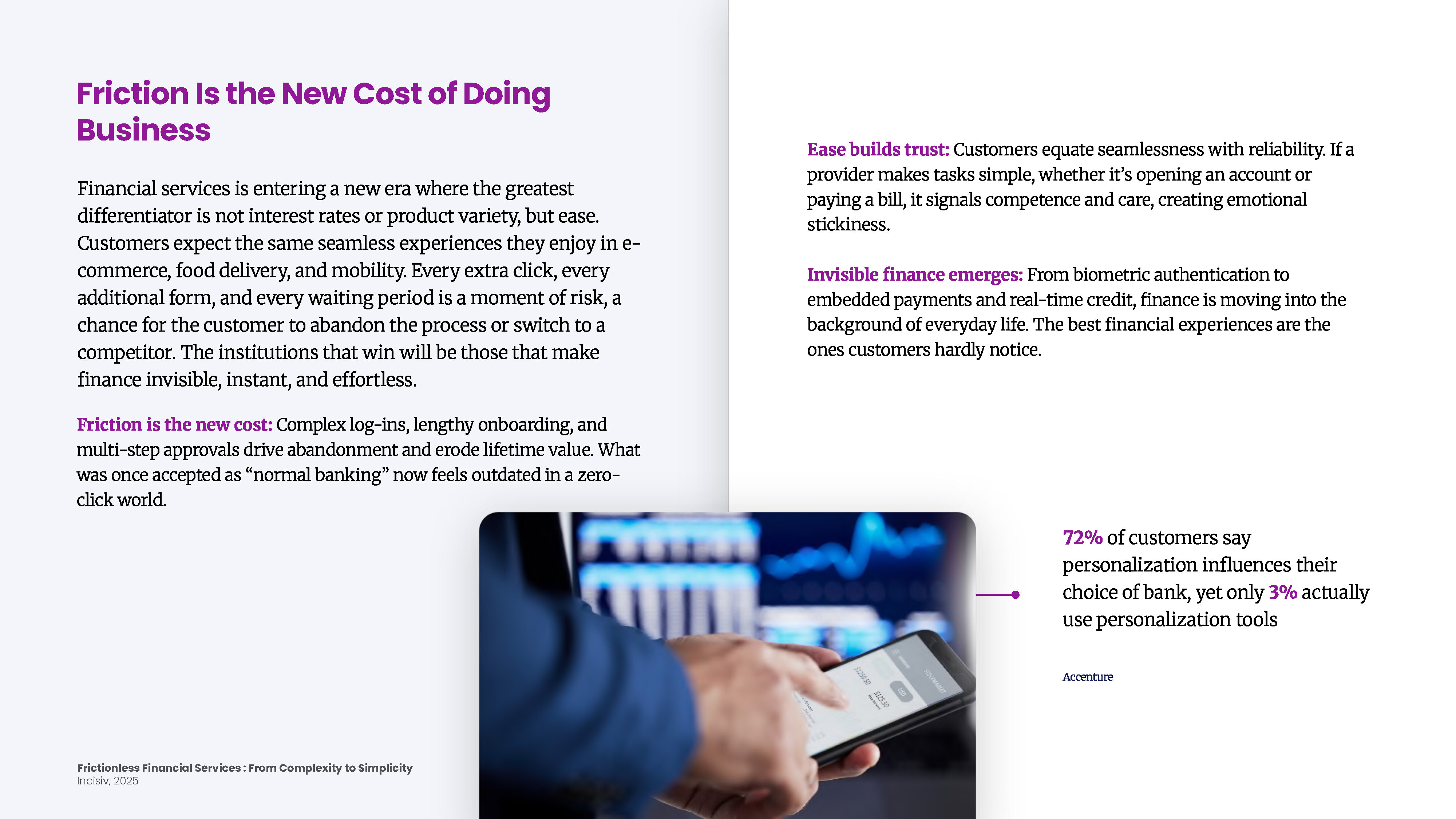 This market snapshot examines how financial institutions can transform complexity into simplicity through invisible, instant, and effortless experiences. It explores the critical transformation areas differentiating category leaders, from one-click onboarding powered by digital identity and biometrics to embedded payments integrated seamlessly into everyday platforms and AI-driven real-time credit decisioning. The analysis provides actionable frameworks for eliminating friction, while balancing speed with security and transparency, revealing how institutions that prioritize ease can unlock measurable growth in customer advocacy and profitability.