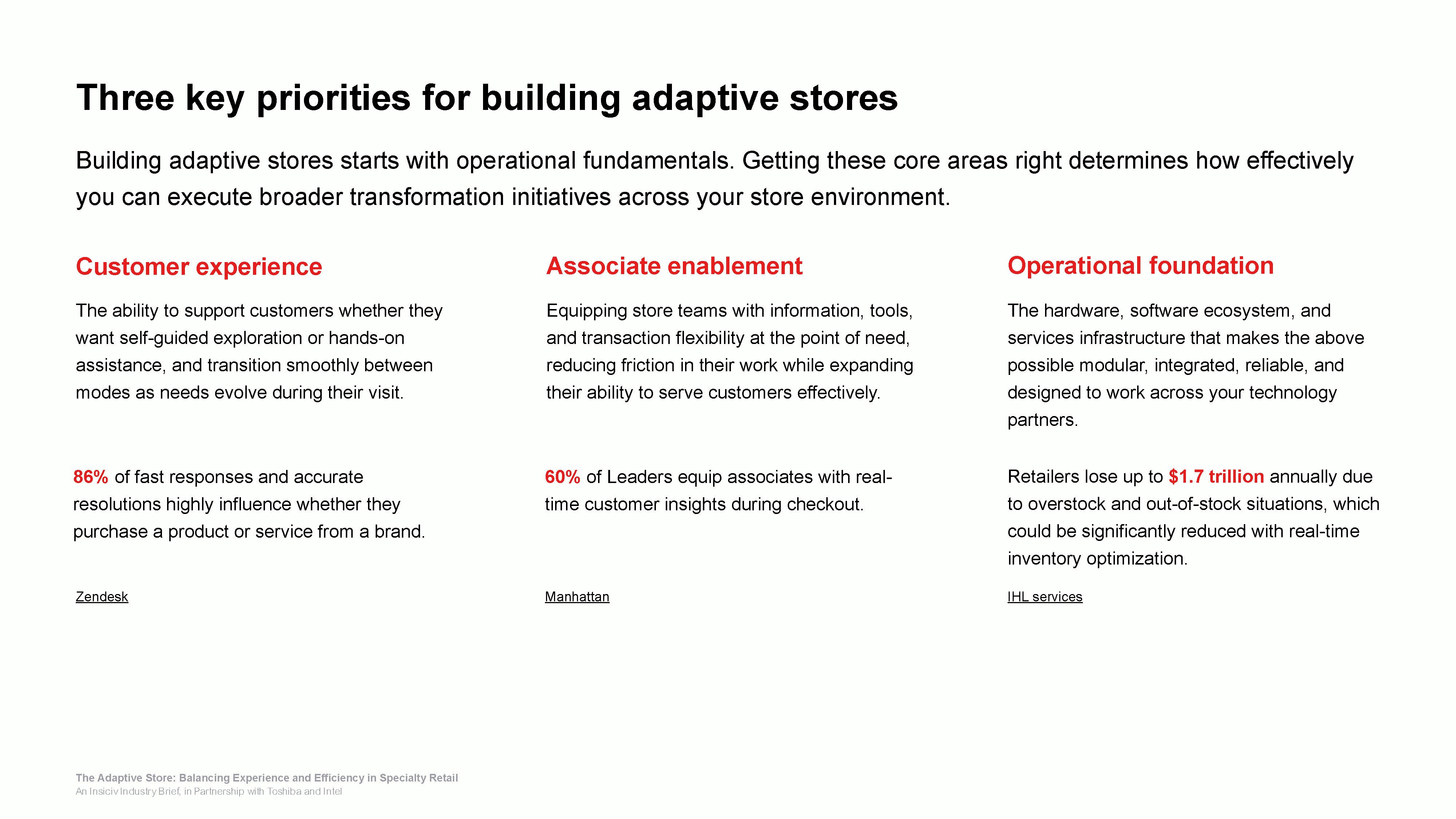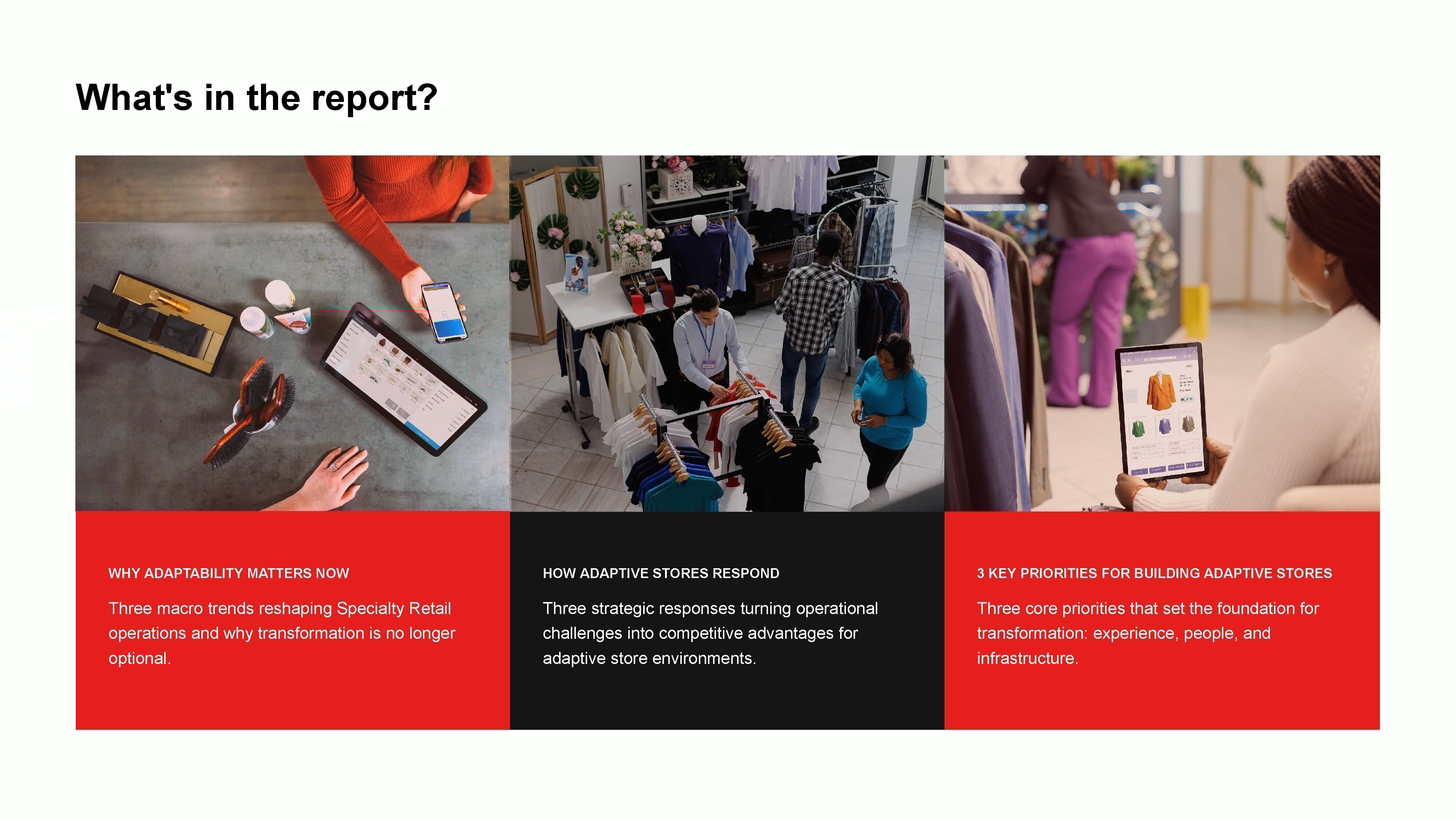 This industry brief examines how adaptive stores resolve these tensions by designing for experience and efficiency together. It explores the forces reshaping specialty retail operations, the shifts required to move from episodic excellence to consistent execution, and the foundational priorities that enable stores to respond fluidly to changing customer and business needs. The brief frames adaptability as an operational discipline, one that helps retailers empower associates, connect systems, and build stores that evolve without disruption.